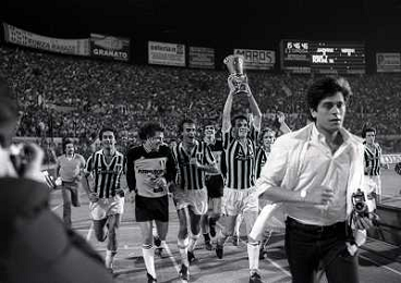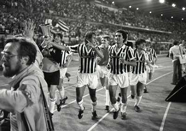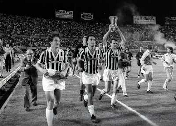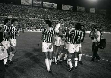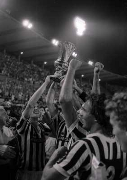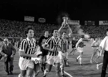 22-06-1983 TORINO- FINALE DI COPPA ITALIA JUVENTUS VERONA 3-0 NELLA FOTO ZBIGNIEW BONIEK GIOVANNI TRAPATTONI E EMICHEL PLATINI AG ALDO LIVERANI SAS