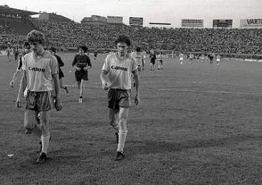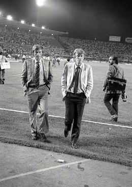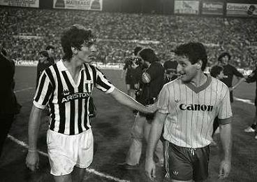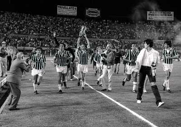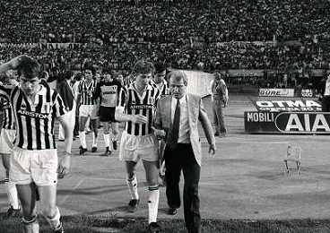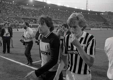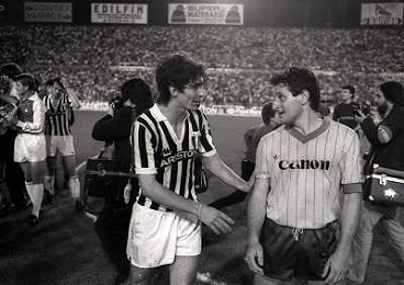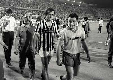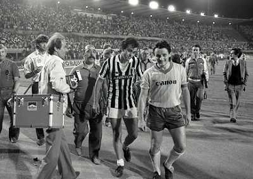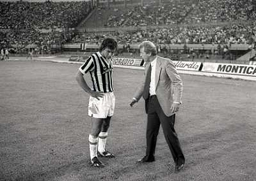 22-06-1983 TORINO- FINALE DI COPPA ITALIA JUVENTUS VERONA 3-0 NELLA FOTO MICHEL PALTINI E GIOVANNI TRAPATTONI AG ALDO LIVERANI SAS