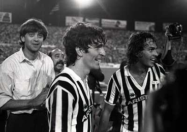 22-06-1983 TORINO- FINALE DI COPPA ITALIA JUVENTUS VERONA 3-0 NELLA FOTO DOMENICO MAROCCHINO-PAOLO ROSSI E ANTONIO CABRINI AG ALDO LIVERANI SAS