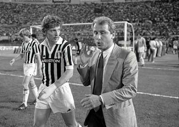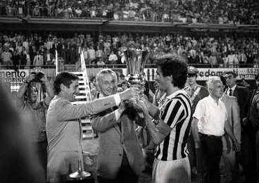22-06-1983 TORINO- FINALE DI COPPA ITALIA JUVENTUS VERONA 3-0 NELLA FOTO ZBIGNIEW BONIEK GIOVANNI TRAPATTONI AG ALDO LIVERANI SAS