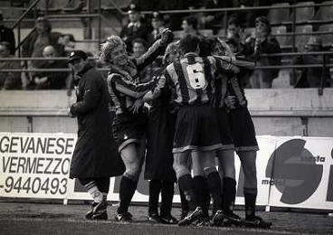 19-02-1995 MILANO-CAMPIONATO DI CALCIO SERIE A INTER BRESCIA 1-0 NELLA FOTO ABBRACCI GIOCATORI INTER AG ALDO LIVERANI SAS