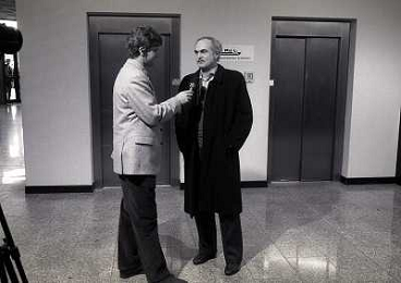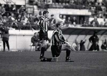 19-02-1995 MILANO-CAMPIONATO DI CALCIO SERIE A INTER BRESCIA 1-0 NELLA FOTO SANDRO MAZZOLA CON IL TELECRONISTA SPORTIVO GIAN LUCA ROSSI AG ALDO LIVERANI SAS