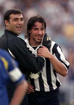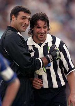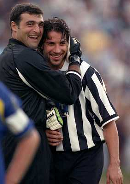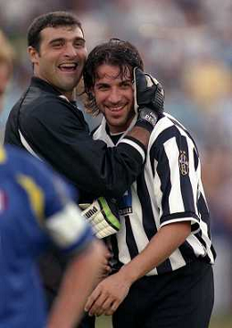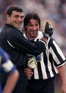 1998-1999 VILLAR PEROSA-AMICHEVOLE ESTIVA JUVENTUS A-JUVENTUS B NELLA FOTO ALESSANDRO DEL PEIRO CON ANGELO PERUZZI AG ALDO LIVERANI SAS