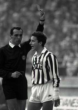 10-03-1991 MILANO-CAMPIONATO DI CALCIO SERIE A INTER JUVENTUS 2-0 NELLA FOTO ARBITRO BESCHIN AMMONISCE EUGENIO CORINI AG ALDO LIVERANI SAS