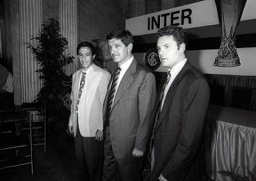 1991 MILANO RADUNO E PRESENTAZIONE DELL'INTER NELLA FOTO ANGELO ORLANDO-CORRADO ORRICO E STEFANO DESIDERI AG ALDO LIVERANI SAS