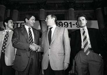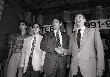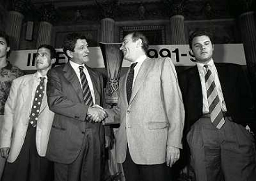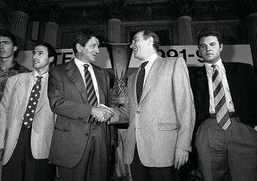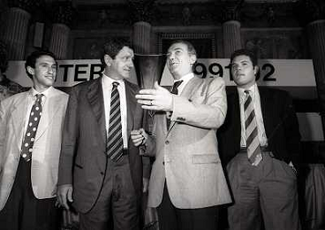 1991 MILANO RADUNO E PRESENTAZIONE DELL'INTER NELLA FOTO ANGELO ORLANDO CORRADO ORRICO CON ERNESTO PELLEGRINI E STEFANO DESIDERI AG ALDO LIVERANI SAS