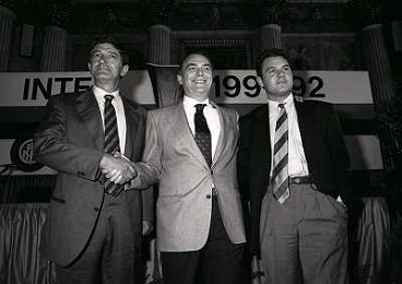 1991 MILANO RADUNO E PRESENTAZIONE DELL'INTER NELLA FOTO CORRADO ORRICO CON ERNESTO PELLEGRINI E STEFANO DESIDERI AG ALDO LIVERANI SAS