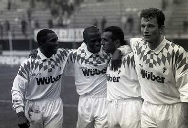 16-10-1994 MILANO -CAMPIONATO DI CALCIO SERIE A INTER BARI 1-2 NELLA FOTO ESULTANZA GIOCATORI DEL BARI AG ALDO LIVERANI SAS