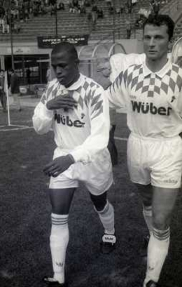 16-10-1994 MILANO -CAMPIONATO DI CALCIO SERIE A INTER BARI 1-2 NELLA FOTO MIGUEL GUERRERO E MONTANARI AG ALDO LIVERANI SAS