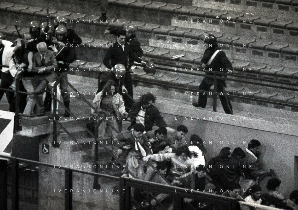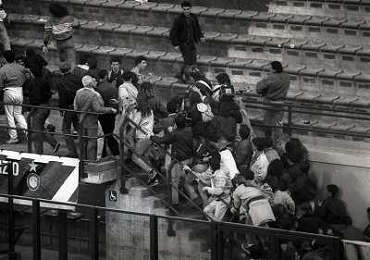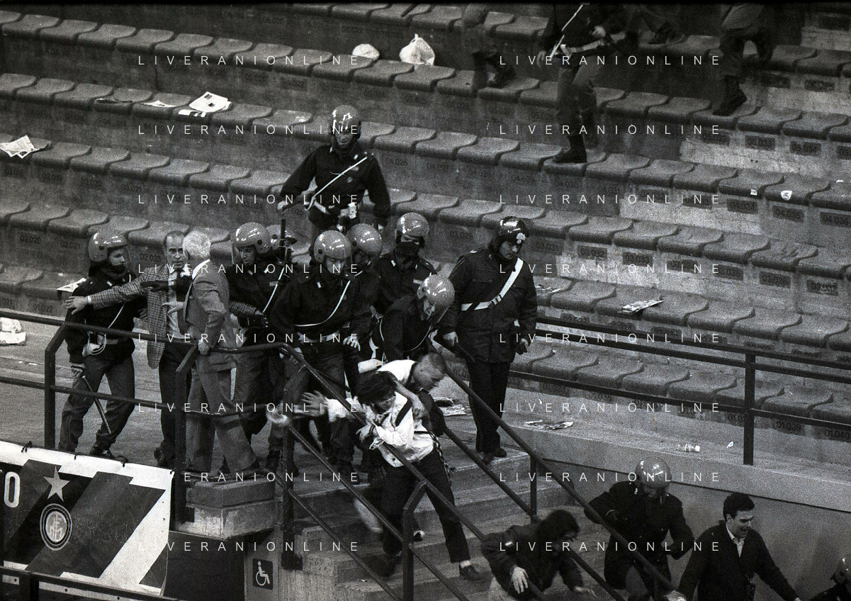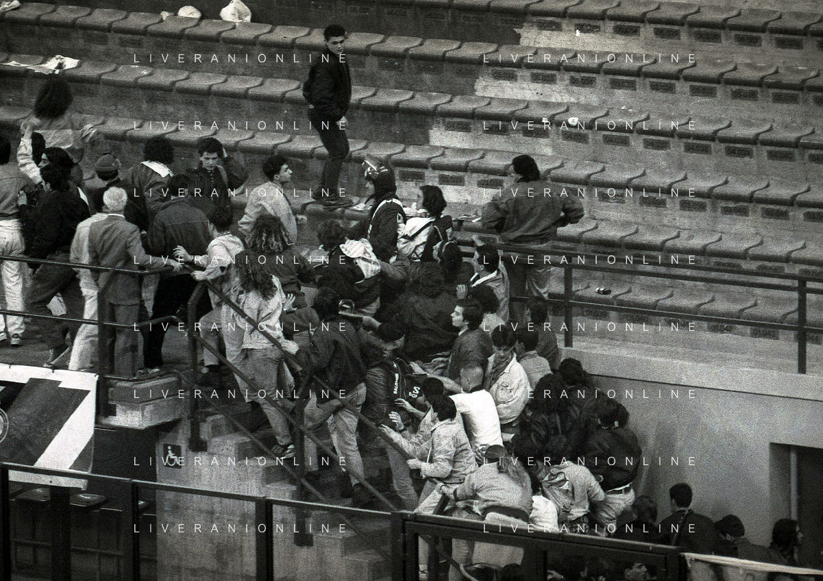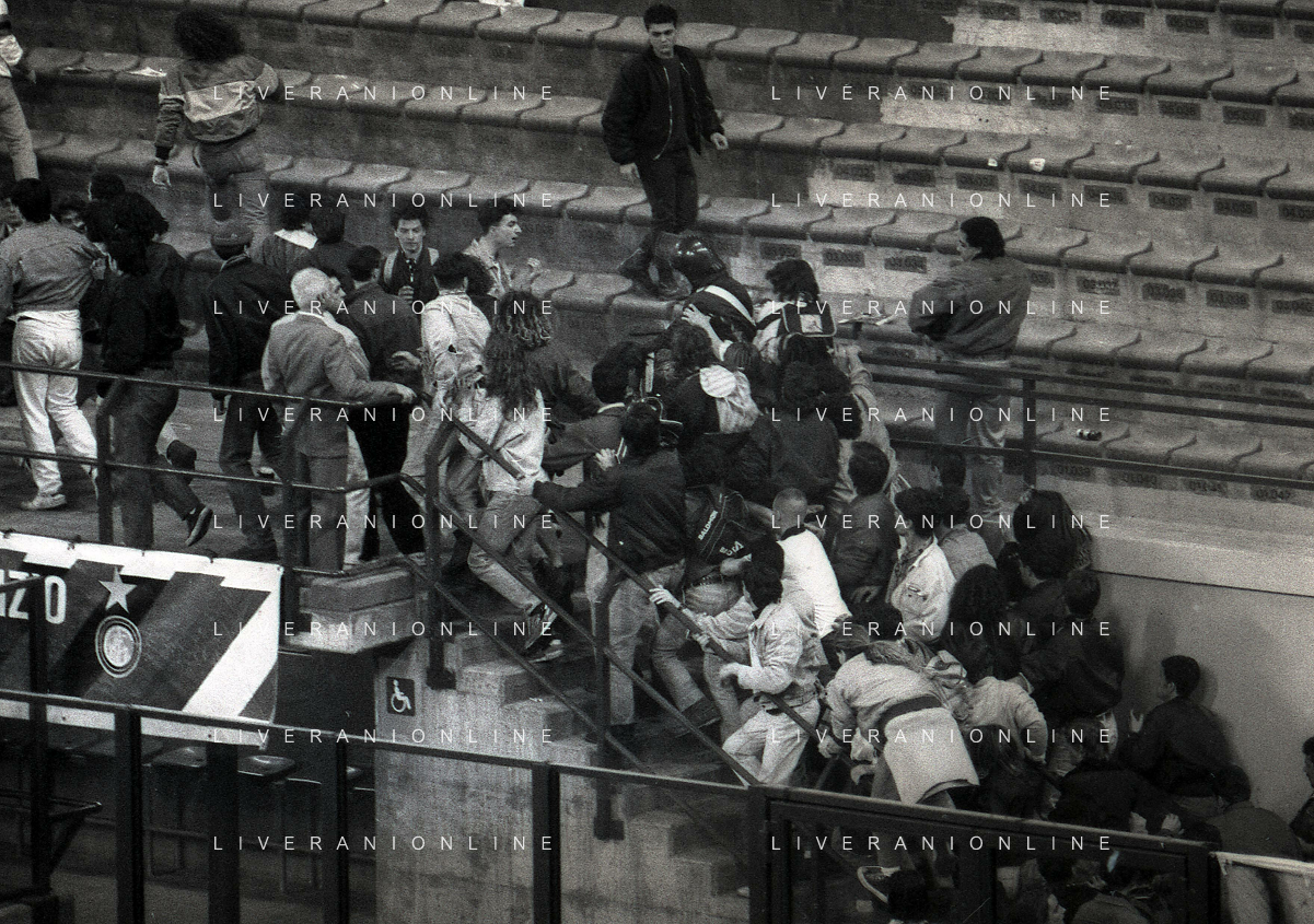 MILANO 20-03-1991 QUARTI DI FINALE DI COPPA UEFA INTER ATALANTA 2-0 NELLA FOTO INCIDENTI COI TIFOSI AG ALDO LIVERANI SAS