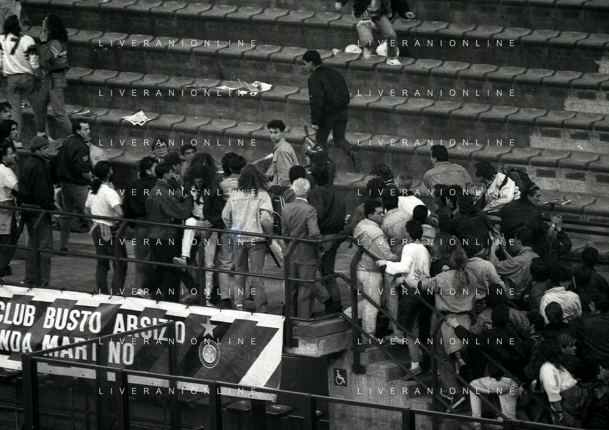 MILANO 20-03-1991 QUARTI DI FINALE DI COPPA UEFA INTER ATALANTA 2-0 NELLA FOTO INCIDENTI CON I TIFOSI AG ALDO LIVERANI SAS