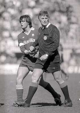 27-03-1988 MILANO-CAMPIONATO DI CALCIO SERIE A INTER ROMA 4-2 NELLA FOTO GIUSEPPE GIANNINI E LUIGI AGNOLIN AG ALDO LIVERANI SAS