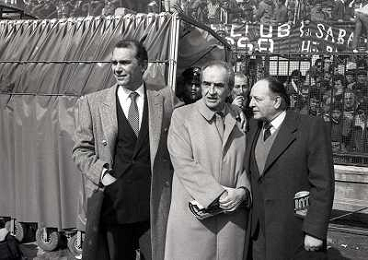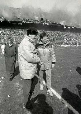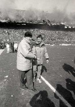 17-03-1985 MILANO CAMPIONATO DI CALCIO SERIE A INTER MILAN 2-2 NELLA FOTO ERNESTO PELLEGRINI CON GIUSEPPE PRISCO AG ALDO LIVERANI SAS