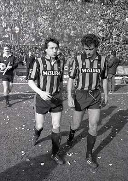 17-03-1985 MILANO CAMPIONATO DI CALCIO SERIE A INTER MILAN 2-2 NELLA FOTO KARL HEINZ RUMMENIGGE E FILIPPO GALLI AG ALDO LIVERANI SAS