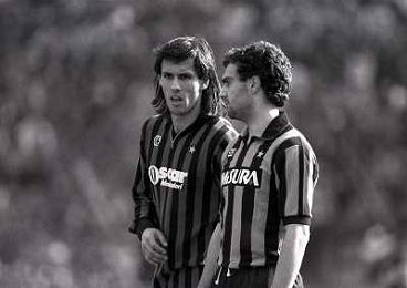 17-03-1985 MILANO CAMPIONATO DI CALCIO SERIE A INTER MILAN 2-2 NELLA FOTO GIUSEPPE BERGOMI E FRANCO BARESI AG ALDO LIVERANI SAS