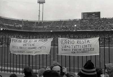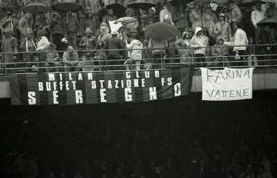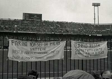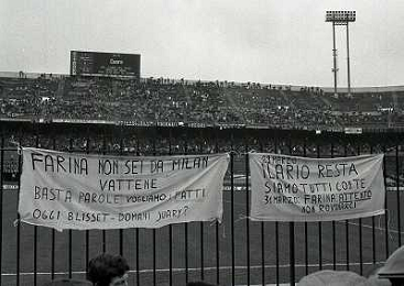 01-04-1984 MILANO CAMPIONATO DI CALCIO SERIE A MILAN NAPOLI 0-2 NELLA FOTO CONTESTAZIONE DEI TIFOSI DEL MILAN NEI CONFRONTI DEL PRESIDENTE GIUSEPPE FARINA AG ALDO LIVERANI SAS