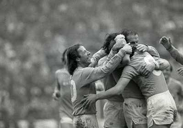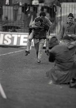 01-04-1984 MILANO CAMPIONATO DI CALCIO SERIE A MILAN NAPOLI 0-2 NELLA FOTO ABBRACCI GIOCATORI NAPOLI AG ALDO LIVERANI SAS