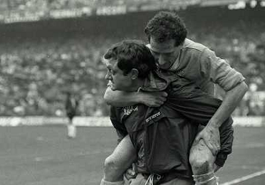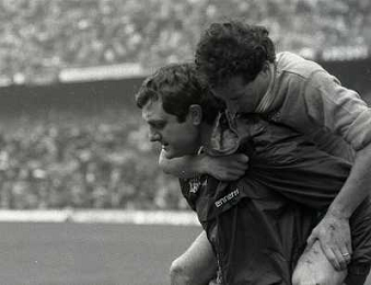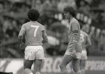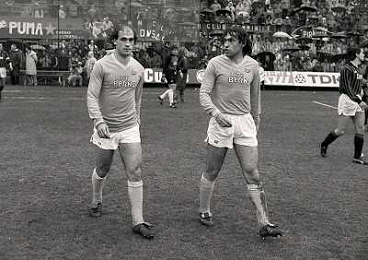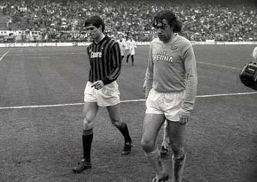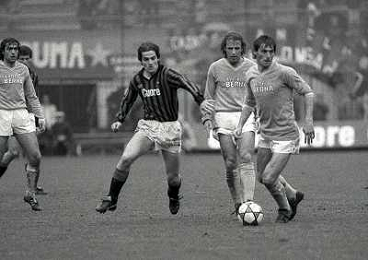 01-04-1984 MILANO CAMPIONATO DI CALCIO SERIE A MILAN NAPOLI 0-2 NELLA FOTO SALVATORE CARMANDO CON COSTANZO CELESTINI AG ALDO LIVERANI SAS