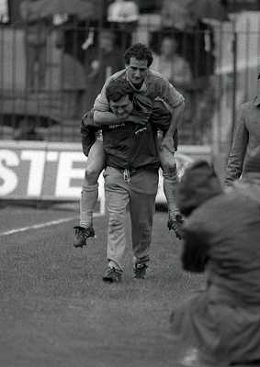 01-04-1984 MILANO CAMPIONATO DI CALCIO SERIE A MILAN NAPOLI 0-2 NELLA FOTO INFORTUNIO COSTANZO CELESTINI AG ALDO LIVERANI SAS