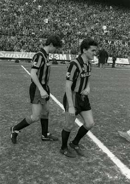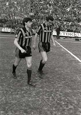 18-03-1984 MILANO CAMPIONATO DI CALCIO SERIE A MILAN INTER 0-0 NELLA FOTO ANDREA ICARDI E HANSI MULLER AG ALDO LIVERANI SAS