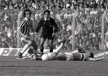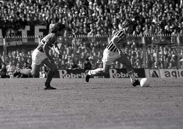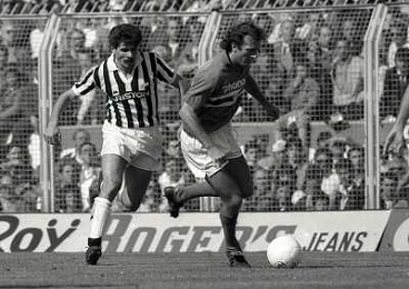 13-04-1986 GENOVA - CAMPIONATO DI CALCIO SERIE A SAMPDORIA JUVENTUS 0-0 NELLA FOTO MICHEL PLATINI E FAUSTO PARI AG ALDO LIVERANI SAS