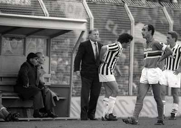 13-04-1986 GENOVA - CAMPIONATO DI CALCIO SERIE A SAMPDORIA JUVENTUS 0-0 NELLA FOTO EUGENIO BERSELLINI E MICHEL PLATINI AG ALDO LIVERANI SAS