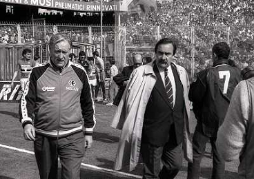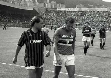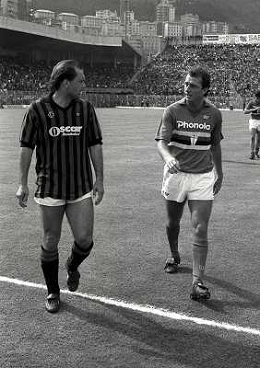 14-04-1985 GENOVA-CAMPIONATO DI CALCIO SERIE A SAMPDORIA MILAN 2-1 NELLA FOTO NILS LIEDHOLM E SILVANO RAMACCIONI AG ALDO LIVERANI SAS