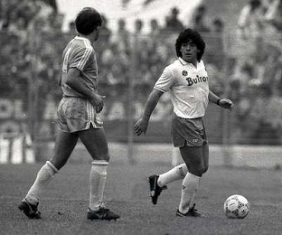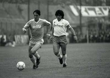 03-05-1987 COMO-CAMPIONATO DI CALCIO SERIE A COMO NAPOLI 1-1 NELLA FOTO ANTONIO TEMPESTILLI E DIEGO MARADONA AG ALDO LIVERANI SAS