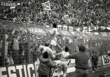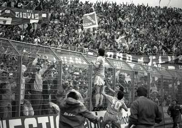 03-05-1987 COMO-CAMPIONATO DI CALCIO SERIE A COMO NAPOLI 1-1 NELLA FOTO ESULTANZA GIOCATORI COMO AG ALDO LIVERANI SAS