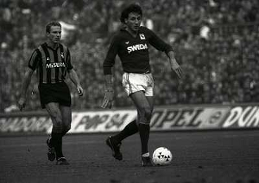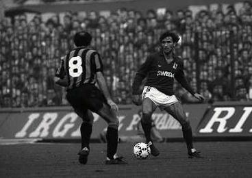 09-11-1986 MILANO-CAMPIONATO DI CALCIO SERIE A INTER TORINO 2-1 NELLA FOTO EZIO ROSSI E KARL HEINZ RUMMENIGGE AG ALDO LIVERANI SAS