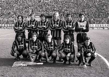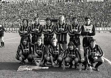 23-12-1984 BERGAMO CAMPIONATO DI CALCIO SERIE A ATALANTA TORINO 0-0 NELLA FOTO FORMAZIONE ATALANTA DA SIN MARINO MAGRIN-MARCO PACIONE-ROBERTO SOLDA'-GLEN STROMBERG-CARMINE GENTILE-OTTORINO PIOTTI SED SIN ENRICO VELLA-EUGENIO PERICO-ANDREA AGOSTINELLI-GIORGIO MAGNOCAVALLO- CARLO OSTI AG ALDO LIVERANI SAS