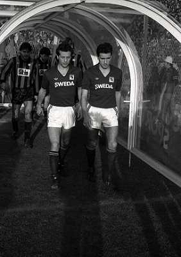 23-12-1984 BERGAMO CAMPIONATO DI CALCIO SERIE A ATALANTA TORINO 0-0 NELLA FOTO WALTER SCHACHNER E CARLO OSTI AG ALDO LIVERANI SAS