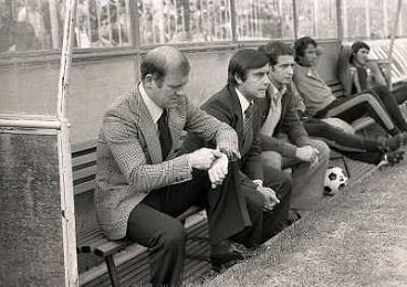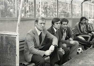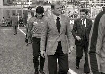 25-09-1977 MILANO-CAMPIONATO DI CALCIO SERIE A INTER NAPOLI 1-0 NELLA FOTO EUGENIO BERSELLINI ALLENATORE INTER CON RENZO ROVATTI AG ALDO LIVERANI SAS