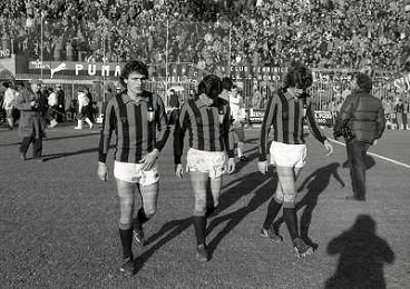 27-01-1980 MILANO CAMPIONATO DI CALCIO SERIE A MILAN CAGLIARI 2-0 NELLA FOTO WALTER NOVELLINO ROBERTO ANTONELLI E ALDO MALDERA AG ALDO LIVERANI SAS