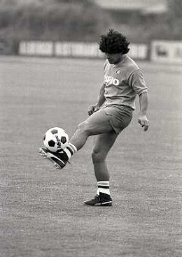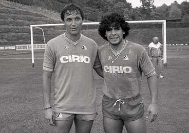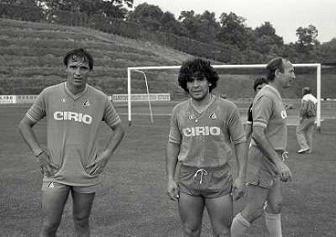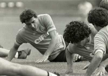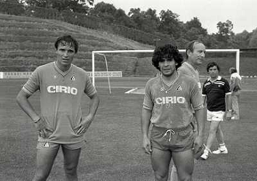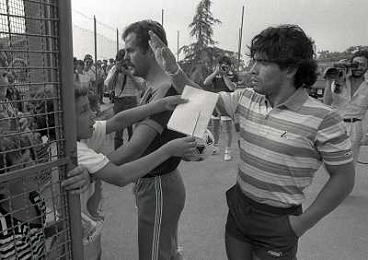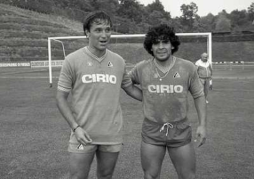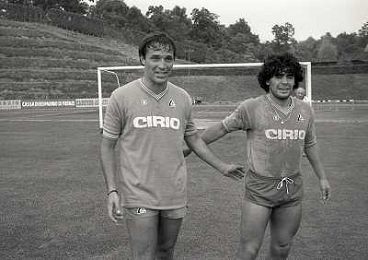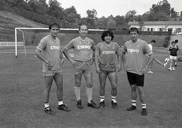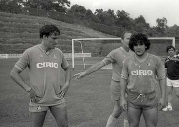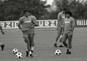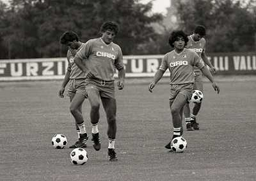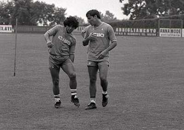 1984 RITIRO NAPOLI A CASTEL DEL PIANOâ¨NELLA FOTO DIEGO ARMANDO MARADONA E DANIEL BERTONI â¨AG ALDO LIVERANI SAS