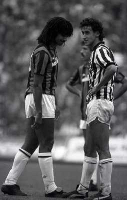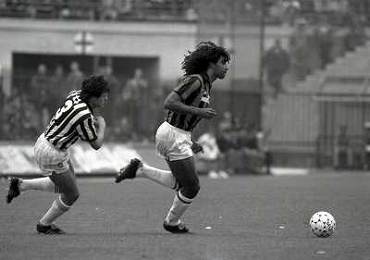 04-10-1987 MILANO-CAMPIONATO DI CALCIO SERIE A MILAN ASCOLI 2-0 NELLA FOTO DANIELE MASSARO CON ANTONIO DELL'OGLIO AG ALDO LIVERANI SAS