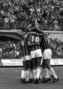 04-10-1987 MILANO-CAMPIONATO DI CALCIO SERIE A MILAN ASCOLI 2-0 NELLA FOTO ABBRACCI GIOCATORI MILAN AG ALDO LIVERANI SAS