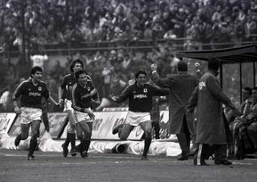03-01-1988 TORINO- CAMPIONATO DI CALCIO SERIE A JUVENTUS TORINO 2-2 NELLA FOTO ESULTANZA MASSIMO CRIPPA AG ALDO LIVERANI SAS