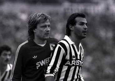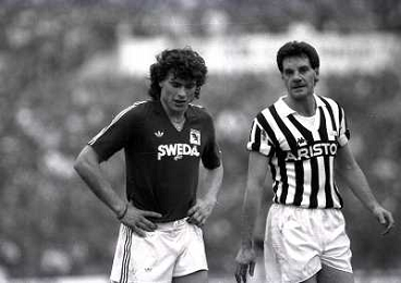 03-01-1988 TORINO- CAMPIONATO DI CALCIO SERIE A JUVENTUS TORINO 2-2 NELLA FOTO KLUAS BERGGREEN E ANTONIO CABRINI AG ALDO LIVERANI SAS