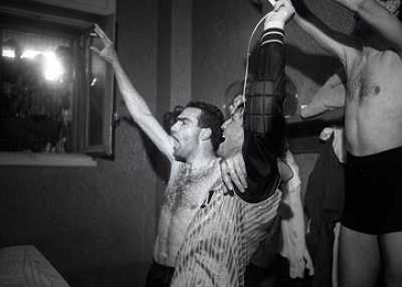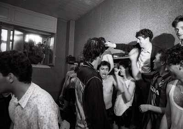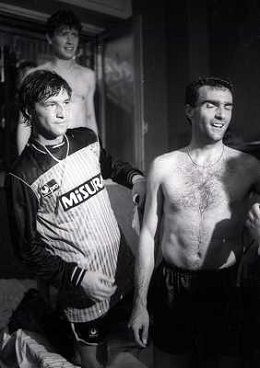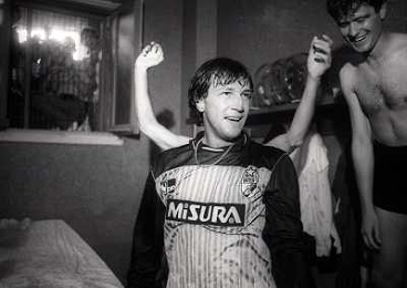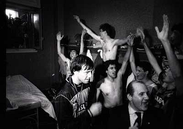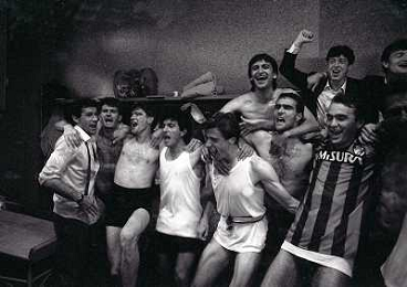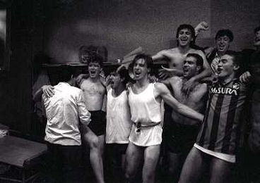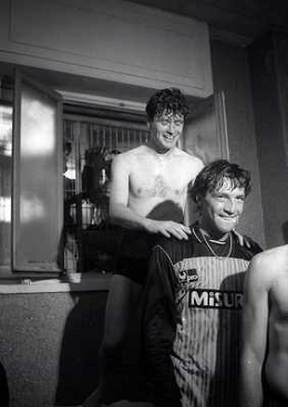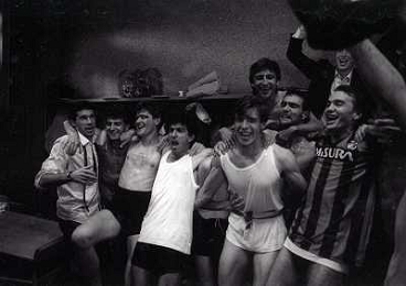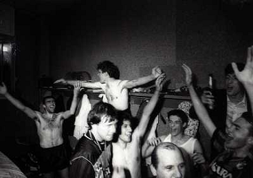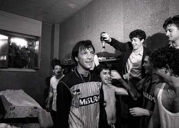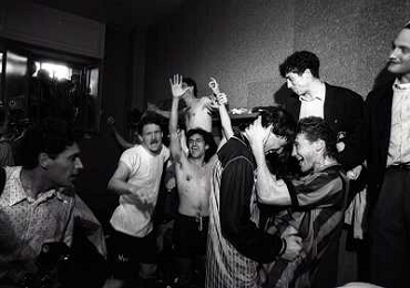 MILANO 28-05-1989 CAMPIONATO DI CALCIO SERIE A INTER NAPOLI 2-1 NELLA FOTO I GIOCATORI DELL'INTER FESTEGGIANO NEGLI SPOGLIATOI LA VITTORIA SUL NAPOLI E LO SCUDETTO AG ALDO LIVERANI SAS