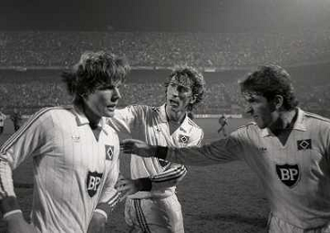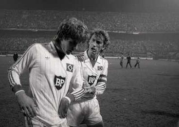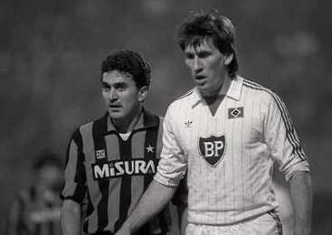 12-12-1984 MILANO- OTTAVI DI COPPA UEFA INTER AMBURGO 1-0 NELLA FOTO KARL HEINZ RUMMENIGGE E FELIX MAGATH AG ALDO LIVERANI SAS