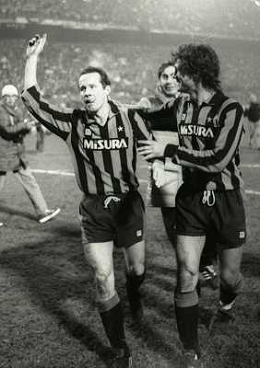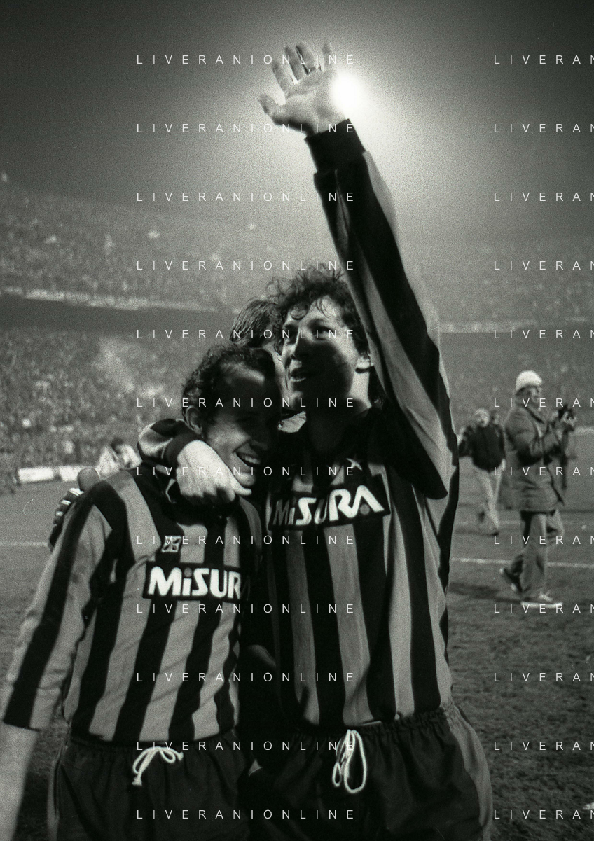 12-12-1984 MILANO- OTTAVI DI COPPA UEFA INTER AMBURGO 1-0 NELLA FOTO ILARIO CASTAGNER E FULVIO COLLOVATI AG ALDO LIVERANI SAS
