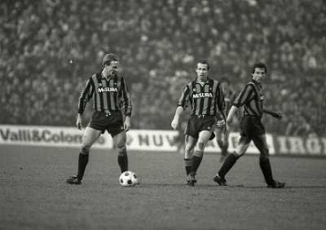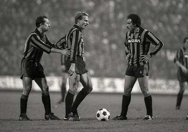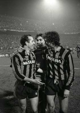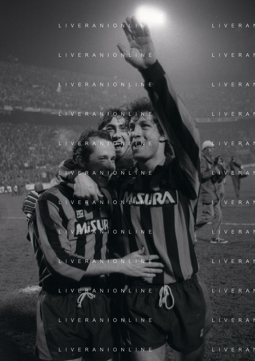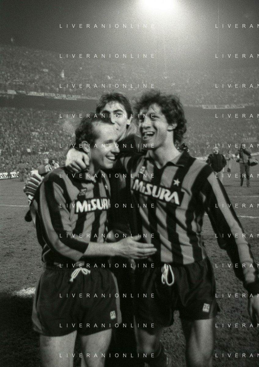 12-12-1984 MILANO- OTTAVI DI COPPA UEFA INTER AMBURGO 1-0 NELLA FOTO KARL HEINZ RUMMENIGGE LIAM BRADY E GIAMPIERO MARINI AG ALDO LIVERANI SAS