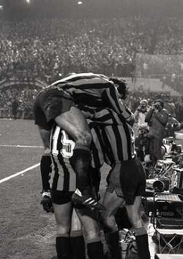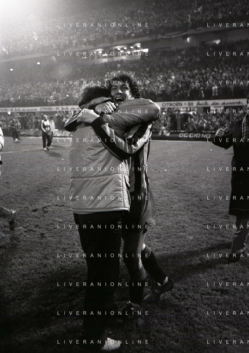 12-12-1984 MILANO- OTTAVI DI COPPA UEFA INTER AMBURGO 1-0 NELLA FOTO ABBRACCI GIOCATORI INTER AG ALDO LIVERANI SAS