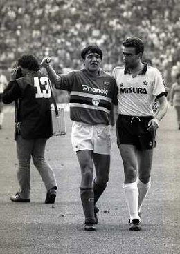05-05-1985 GENOVA- CAMPIONATO DI CALCIO SERIE A SAMPDORIA INTER 1-2 NELLA FOTO FAUSTO PARI E GIUSEPPE BERGOMI AG ALDO LIVERANI SAS