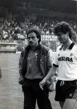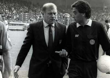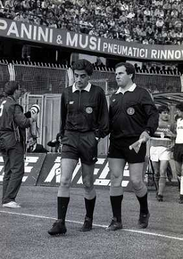 05-05-1985 GENOVA- CAMPIONATO DI CALCIO SERIE A SAMPDORIA INTER 1-2 NELLA FOTO ARBITRO ARCANGELO PEZZELLA CON EUGENIO BERSELLINI AG ALDO LIVERANI SAS