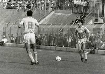 26-04-1987 COMO-CAMPIONATO DI CALCIO SERIE A COMO VERONA 1-1 NELLA FOTO STEFANO BORGONOVO E ARMANDO FERRONI AG ALDO LIVERANI SAS