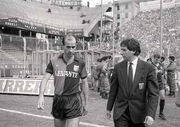 17-04-1988 GENOVA-CAMPIONATO DI CALCIO SERIE B GENOA -MESSINA 3-1 NELLA FOTO SALVATORE SCHILLACI E STEFANO ERANIO AG ALDO LIVERANI SAS