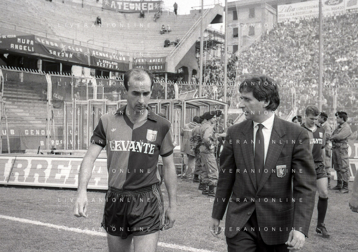 17-04-1988 GENOVA-CAMPIONATO DI CALCIO SERIE B GENOA -MESSINA 3-1 NELLA FOTO ALESSANDRO SCANZIANI E ATTILIO PEROTTI AG ALDO LIVERANI SAS