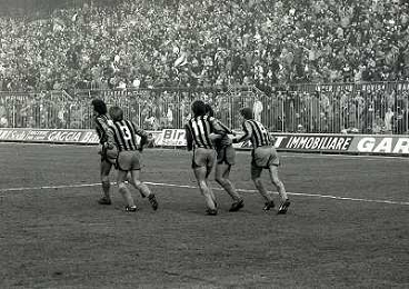 21-12-1980 MILANO-CAMPIONATO DI CALCIO SERIE A INTER TORINO 1-1 NELLA FOTO ABBRACCI GIOCATORI TORINO AG ALDO LIVERANI SAS